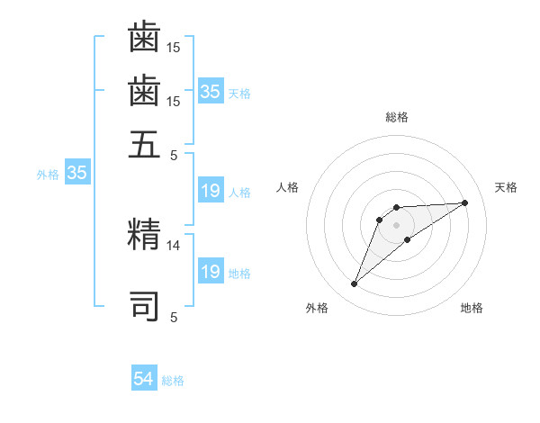 歯歯五 精司さんの外格は35画の4点!