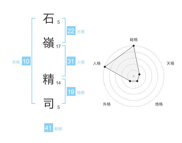 石嶺 精司さんの総格は41画の5点!