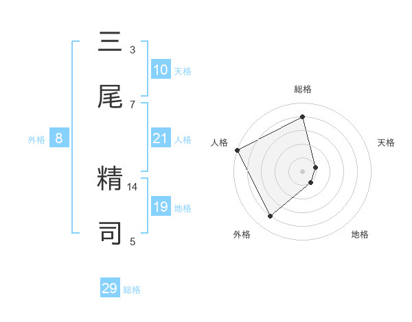 三尾 精司さんの総格は29画の4点!