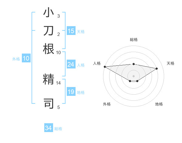 小刀根 精司さんを姓名の画数から五運を鑑定