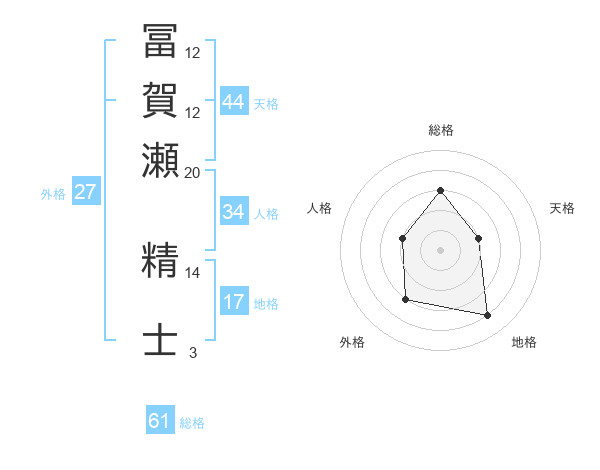 冨賀瀬 精士さんを姓名の画数から五運を鑑定