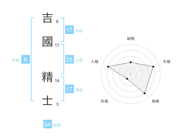 吉國 精士さんの地格は17画の4点!
