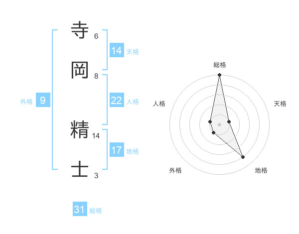 寺岡 精士さんの総格は31画の5点!