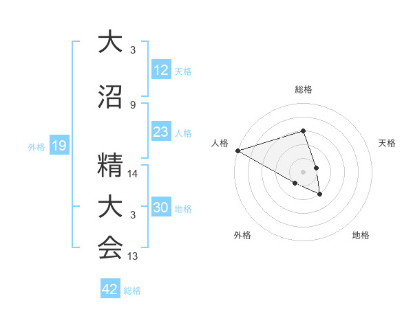大沼 精大会さんを姓名の画数から五運を鑑定
