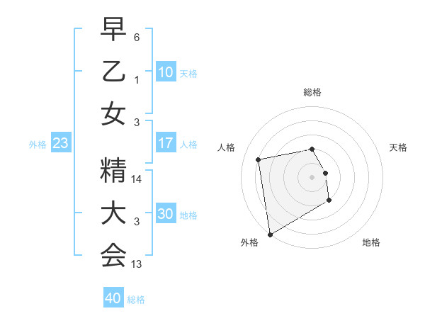 早乙女 精大会さんの総格は40画の2点!