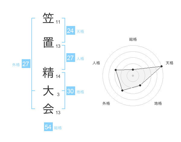 笠置 精大会さんを姓名の画数から五運を鑑定