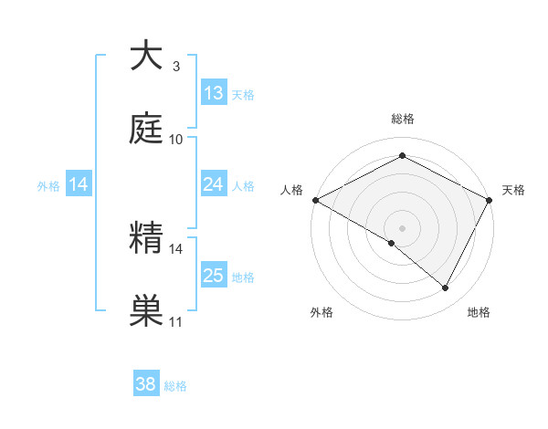 大庭 精巣さんを姓名の画数から五運を鑑定