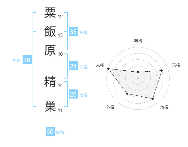 粟飯原 精巣さんを姓名の画数から五運を鑑定