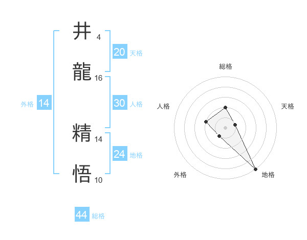 井龍 精悟さんを姓名の画数から五運を鑑定