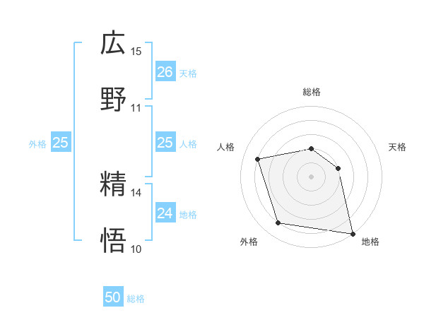 広野 精悟さんの総格は50画の2点!