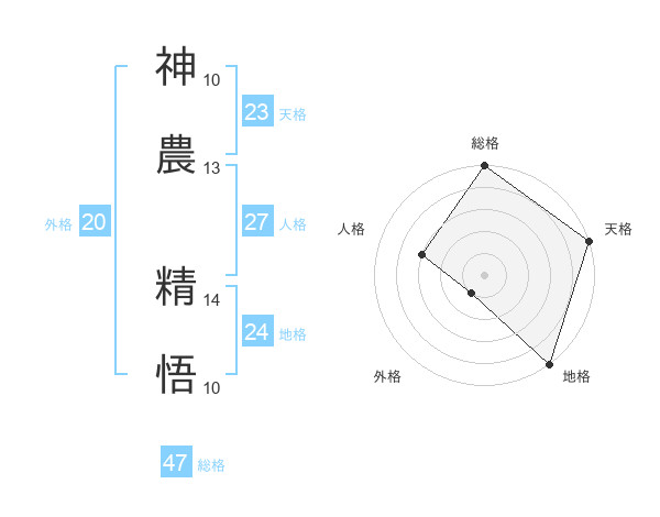 神農 精悟さんの総格は47画の5点!