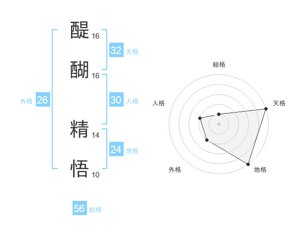 醍醐 精悟さんの天格は32画の5点!
