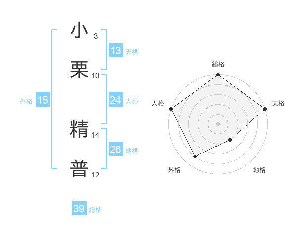 小栗 精普さんの天格は13画の5点!