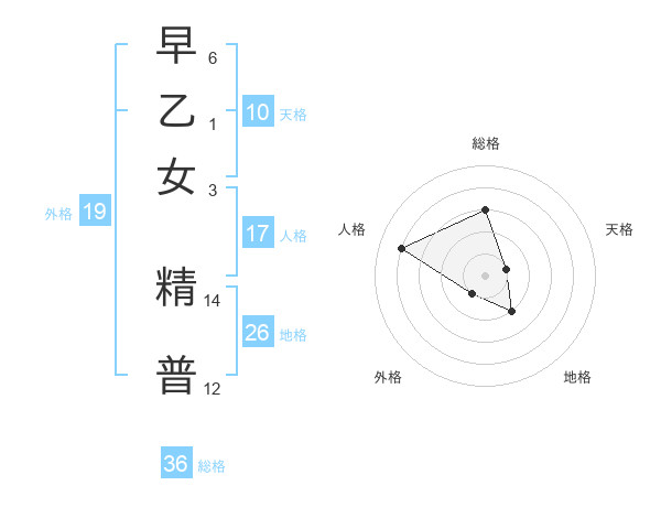 早乙女 精普さんを姓名の画数から五運を鑑定