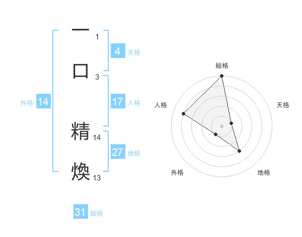 一口 精煥さんの総格は31画の5点!