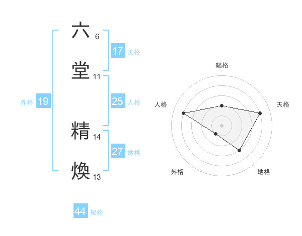 六堂 精煥さんの総格は44画の2点!