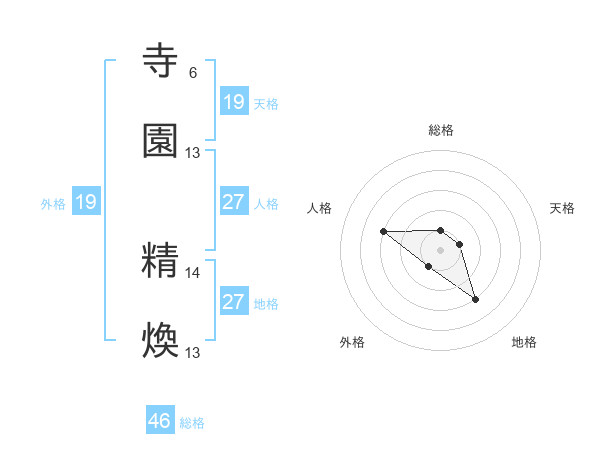 寺園 精煥さんの天格は19画の1点!