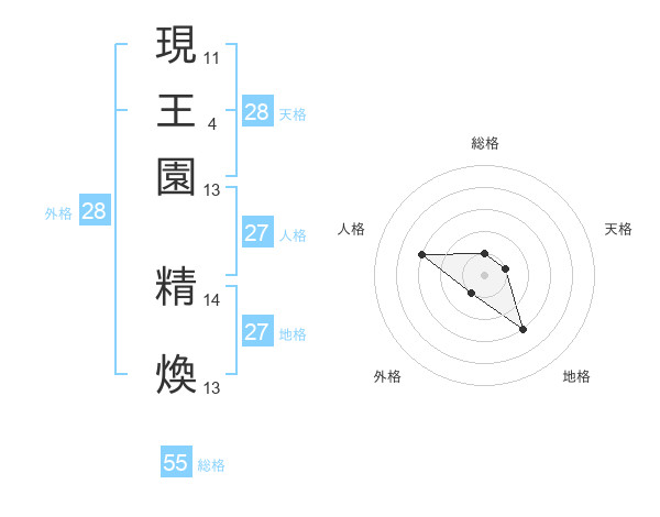 現王園 精煥さんを姓名の画数から五運を鑑定