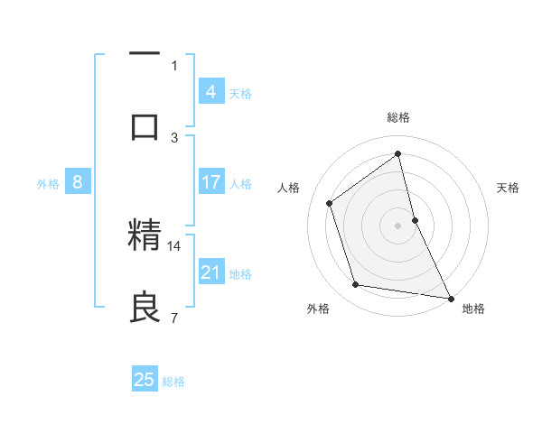 一口 精良さんの地格は21画の5点!