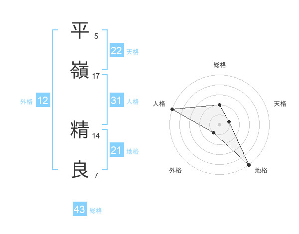 平嶺 精良さんを姓名の画数から五運を鑑定