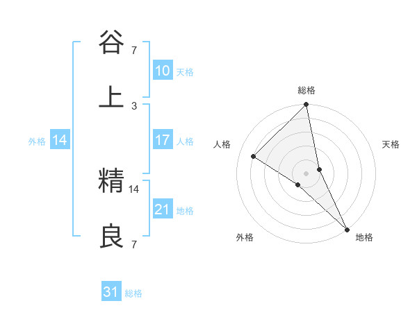 谷上 精良さんの地格は21画の5点!