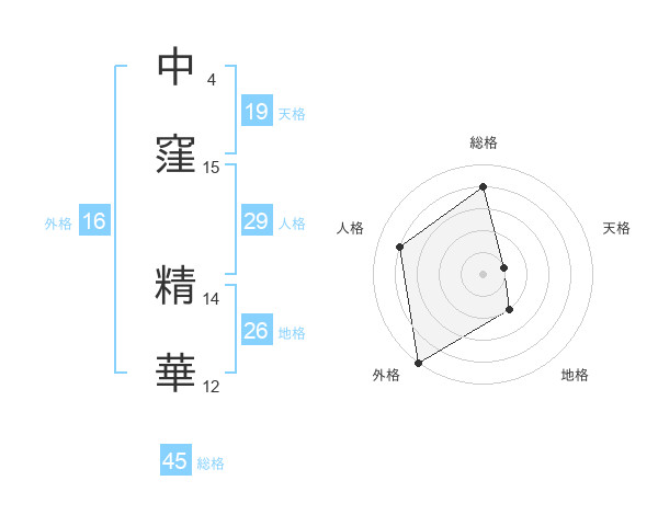 中窪 精華さんの総格は45画の4点!