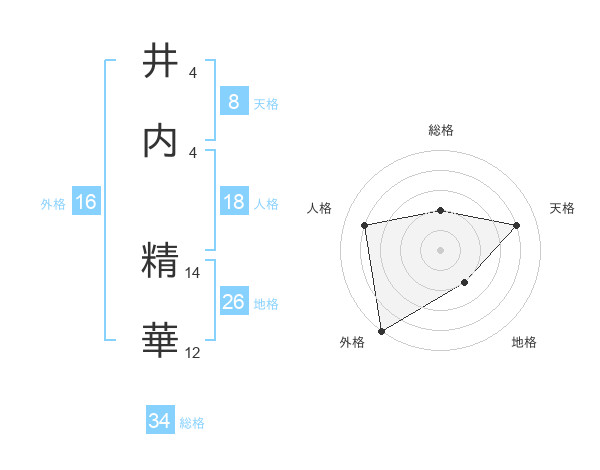 井内 精華さんの総格は34画の2点!