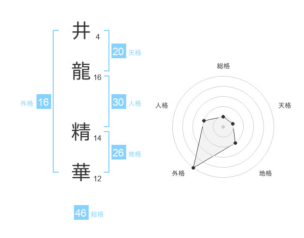 井龍 精華さんの天格は20画の1点!