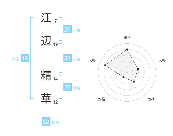 江辺 精華さんの総格は52画の4点!