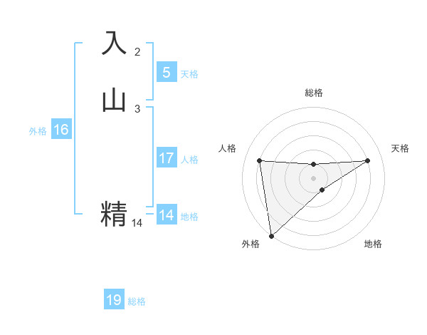 入山 精さんの外格は16画の5点!