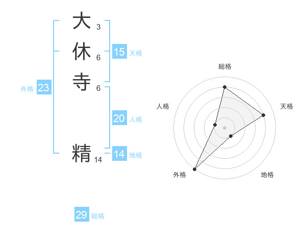 大休寺 精さんの総格は29画の4点!