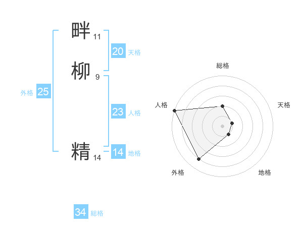畔柳 精さんの総格は34画の2点!