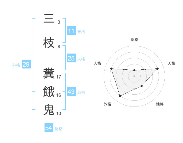 三枝 糞餓鬼さんを姓名の画数から五運を鑑定