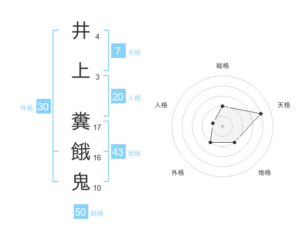 井上 糞餓鬼さんを姓名の画数から五運を鑑定