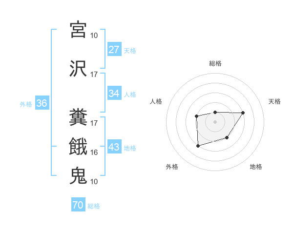 宮沢 糞餓鬼さんの総格は70画の1点!