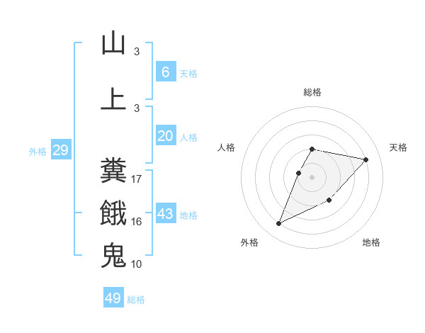山上 糞餓鬼さんを姓名の画数から五運を鑑定