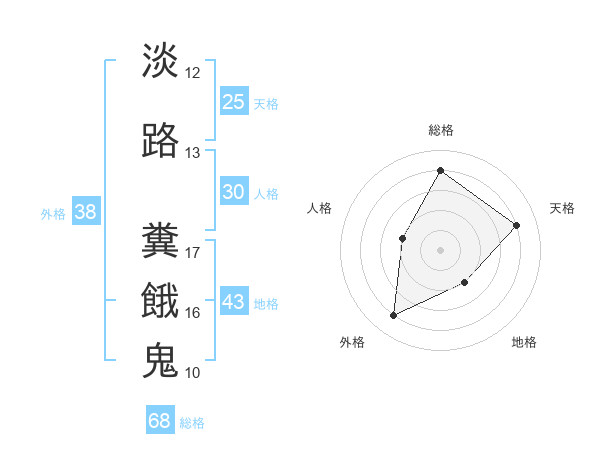 淡路 糞餓鬼さんを姓名の画数から五運を鑑定