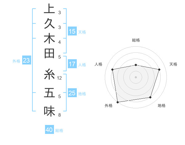 上久木田 糸五味さんの外格は23画の5点!