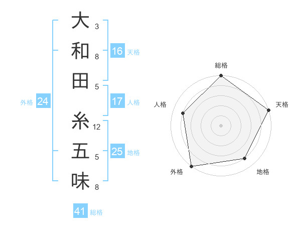 大和田 糸五味さんを姓名の画数から五運を鑑定