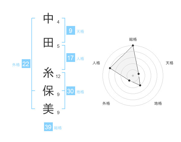 中田 糸保美さんの総格は39画の5点!
