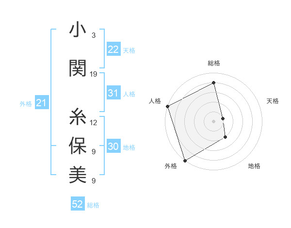 小関 糸保美さんの総格は52画の4点!