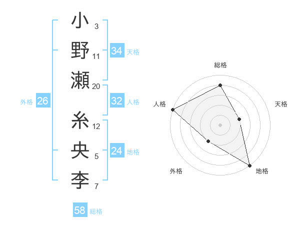 小野瀬 糸央李さんを姓名の画数から五運を鑑定