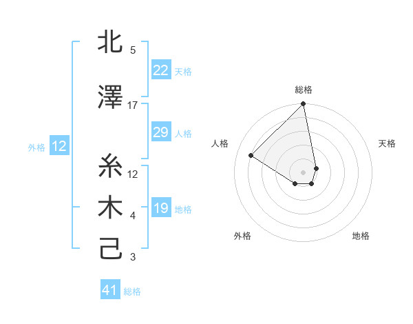 北澤 糸木己さんを姓名の画数から五運を鑑定