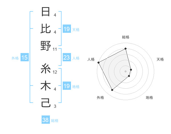 日比野 糸木己さんを姓名の画数から五運を鑑定