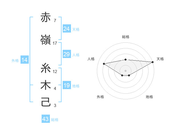 赤嶺 糸木己さんを姓名の画数から五運を鑑定