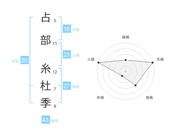 占部 糸杜季さんを姓名の画数から五運を鑑定