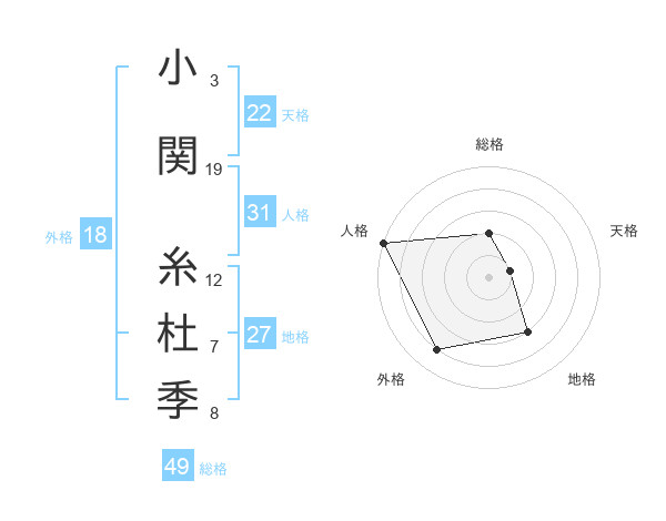 小関 糸杜季さんを姓名の画数から五運を鑑定