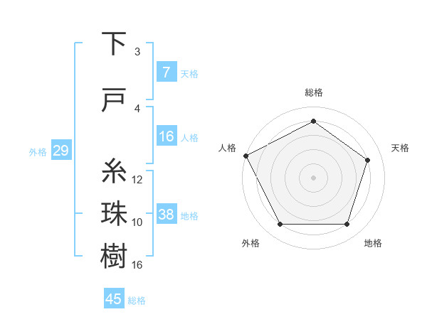 下戸 糸珠樹さんを姓名の画数から五運を鑑定