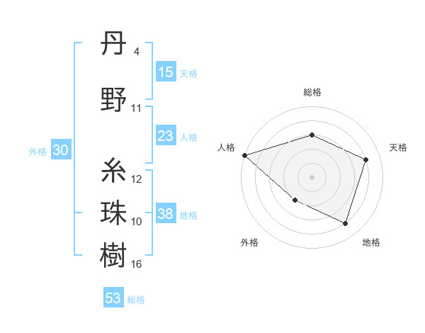 丹野 糸珠樹さんの総格は53画の3点!