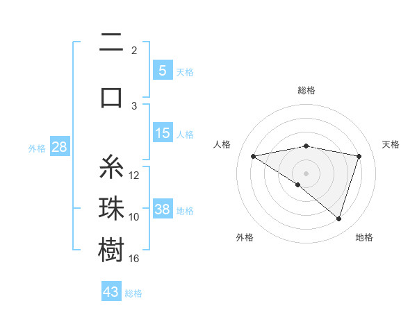 二口 糸珠樹さんを姓名の画数から五運を鑑定